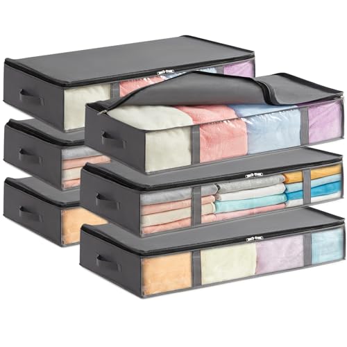 Lifewit förvaring under sängen, 6-pack, vikbara förvaringspåsar för kläder med genomskinligt fönster på framsidan, garderobsorganisering och förvaring för handdukar, kläder, täcken, Grå