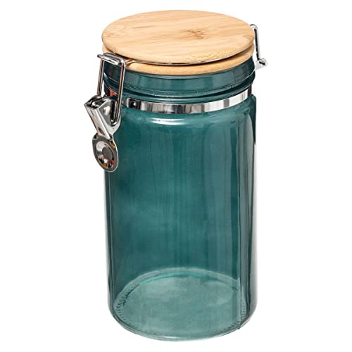 WENKO Förvaringsburk Mio, lock med silikonring för lufttät förvaring, 1 l, glas, blå, 11 x 14,5 x 11 cm
