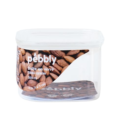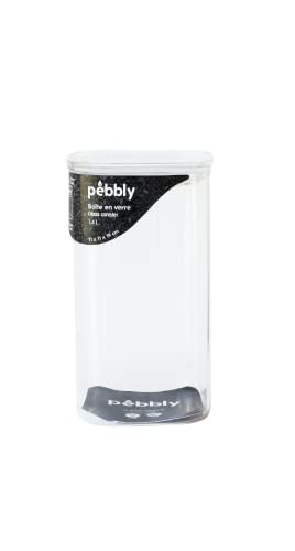 PEBBLY - Förpackning med 3 höga och rektangulära förvaringslådor i glas med glaslock - 470 ml, 1,2 l och 1,8 l - optimerad förvaring för ett organiserat kök