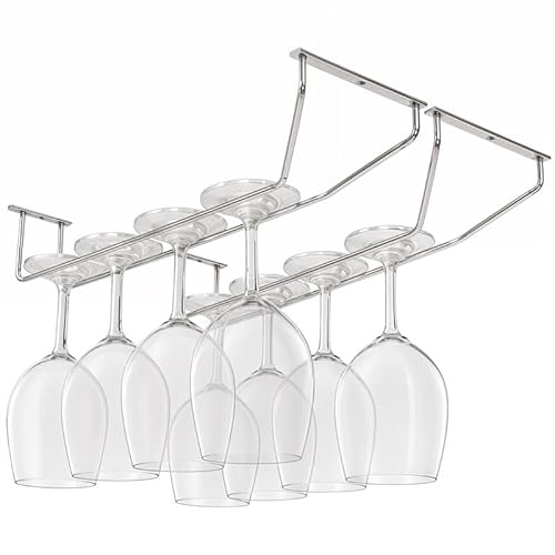 Belle Vous 4 Pack Underskåp Vinglashållarhylla i Kromstål med Skruvar & Väggpluggar – 34 x 11cm – Gods Hängare för Glas – Förvaring för Bar & Kök