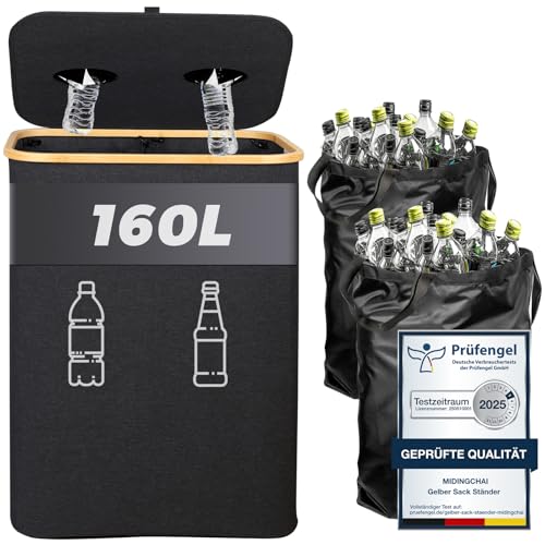 MIDINGCHAI 160L Pantflaskor, samlingsbehållare 2 fack: Stor pantflaskor, förvaring 2 bärkassar – vikbar och vattentät med handtag, tom, samlarbehållare och återvunnet glas, förvaring, svart