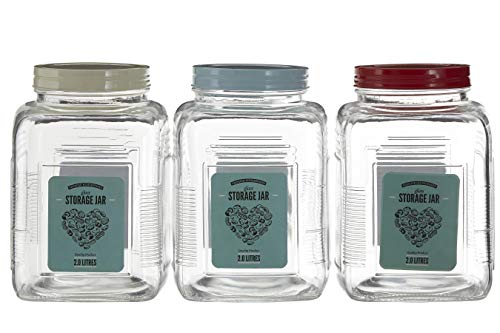 Premier Housewares vintage design glas förvaring förvaringsglas av glas-2280 ml, glas, klar, 15 x 15 x 25