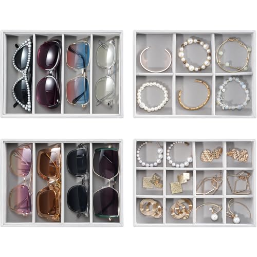 ProCase 2 smyckesbrickor + 2 solglasögonorganisatörer, stapelbara inlägg i smyckeskrin, visningsfodral, förvaring för glas, solglasögon, örhängen, halsband, ringar, armband – grå