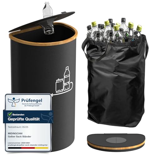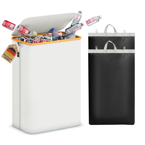 Daal 100 l pantflaskor, gul, påse, ställ, samlarbehållare med lock, pantflaskor, behållare, förvaring, flaskuppsamlare, tomt glas för kök och förråd, sophink organisatör, grå
