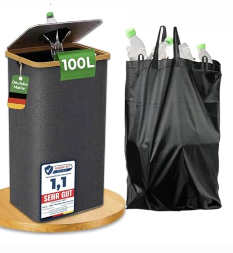 YOUDENOVA 100 l pantflaskor, samlingsbehållare med luktsäker och lock, papperskorg kök, flasksamlare tommat och avfall glas, förvaring, återvinningsbehållare, sopsäckshållare för förråd, grå