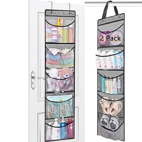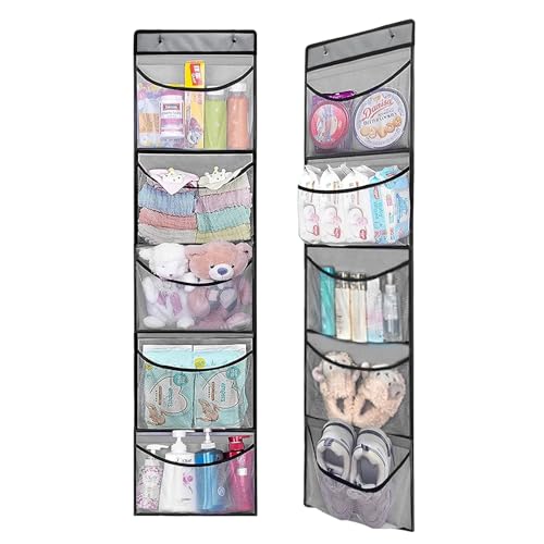 Devesanter Hänghylla - 2 Stycken Nätfickor för Förvaring över Dörren, Organisatör med 5 Fickor för Skåp, Gosedjur och Sovrum (Grå)