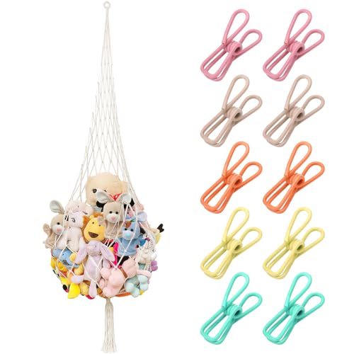 HENGBIRD Gosedjur, förvaring, mjuk leksak, nät, upphängningsbar, nät för gosedjur, mjukisdjur, förvaring med tvättklämmor, förvaring, gosedjur, lämplig för varma hörn, filtar