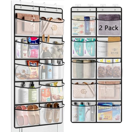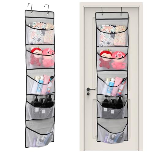 Xocome 2 stycken hängförvaring, 10 nätfickor, organiserare för skåp, förvaring över dörren, hängande förvaring, gosedjur, förvaring för sovrum, badrum (grå)