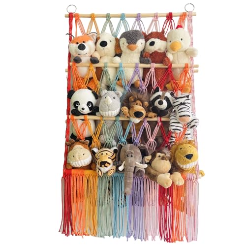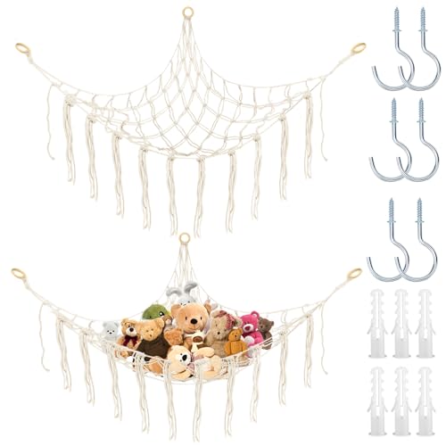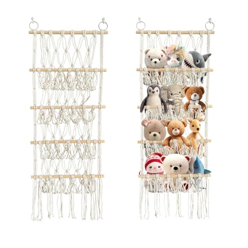 CHRI 2-pack gosedjur, förvaring, nät, boho, makramé, mjukisdjur, hängmatta, leksak, förvaring för barnrum, dekoration