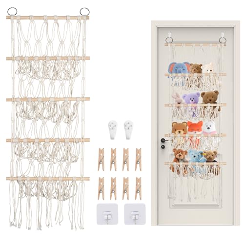 Qivine 4 lager gosedjur, förvaring, hängande, bohemiska mjukisdjur, förvaring för plyschdjur, 38 cm, makraméhylla för barnrum, vardagsrum, sovrum