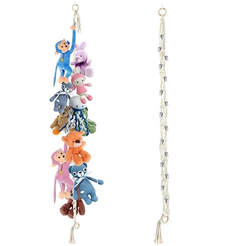 UOCAI Gosedjur, förvaring med 20 metallklämmor, hängande mjuk djurhållare, dekorativt nät för gosedjur, förvaringskedja för upphängning av hattar
