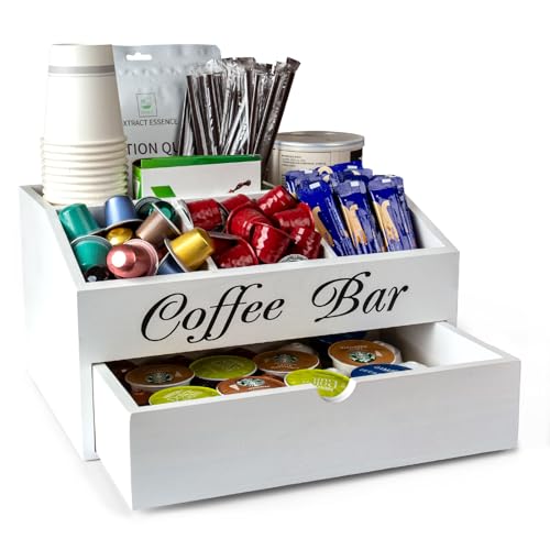 Guolich kaffeorganiserare te förvaring, kaffe tillbehör lådor tepåse förvaringslåda, kaffekapslar förvaring, kaffebar för mjölk, servetter, kaffekapslar, sockerpinnar vita