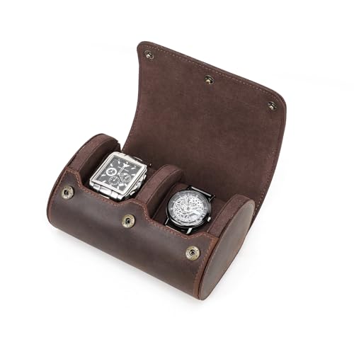 CONTACT'S FAMILY Watch förvaringsbox, äkta läder 2 spår klocka skyddande rulle fodral, organiserare för smycken klocka (kaffe)