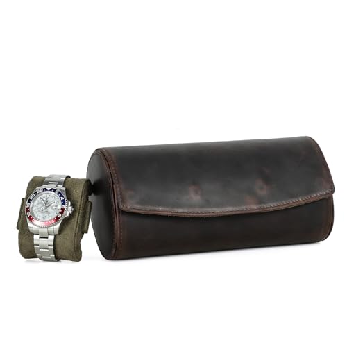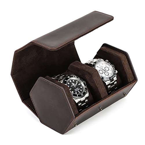 Contact Klockask i äkta läder, klockrulle för 2 klockor för resor, förvaring, klockskydd, organiserare och visningsfodral för män/kvinnor, brunt