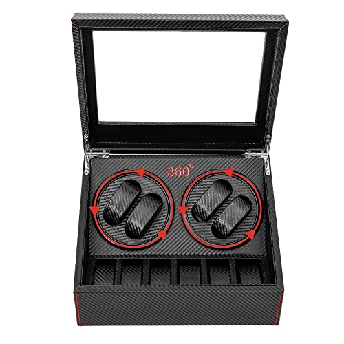 LENJKYYO 4+6 klockuppdragare lyxig automatisk klocksvardare, automatisk klockuppdragare klocklåda, klockvitrinklocka winder, rörelse mekaniska klockor för förvaring av automatiska klockor, SVART