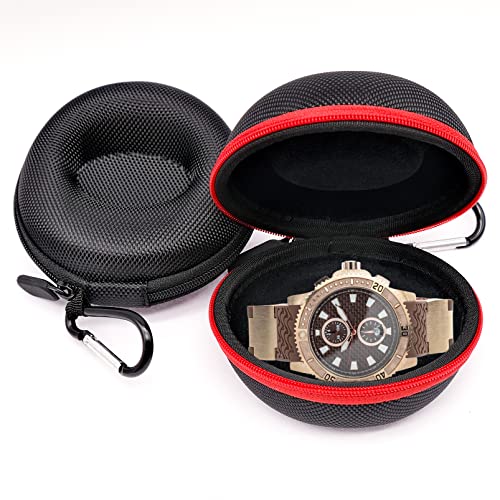 LTHERMELK 2 delar klockförvaringslådor för män, enkel klockbox med dragkedja för förvaring, rund, bärbart klockarmband för att hålla armbandsur, smarta klockor (svart, röd)