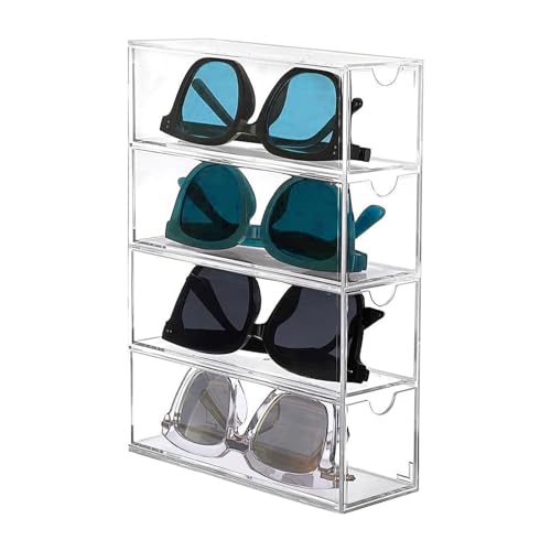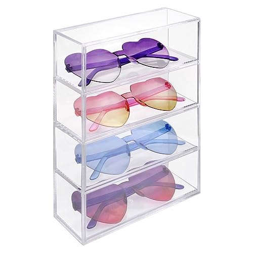 HENGBIRD Förvaringsbox för glasögon, akryl klarhet solglasögon glasögonarrangör förtjockad glasögonlåda smyckeslåda glasögonstativ med 4 lådor för klockor kedjor glasögon kosmetika läsglasögon