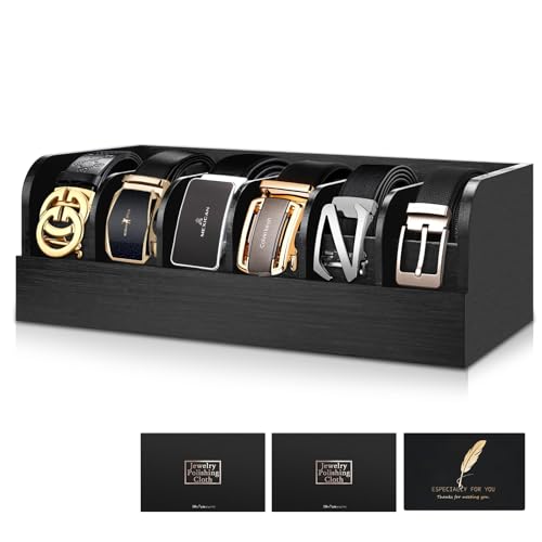 TEGOVE Svart bältesorganiseringslåda, 6 rutnät mörk bambu träbältesställ för skåp, svart låda för bälteslåda, låda, garderob, för män och kvinnor för förvaring av tillbehör, klockor