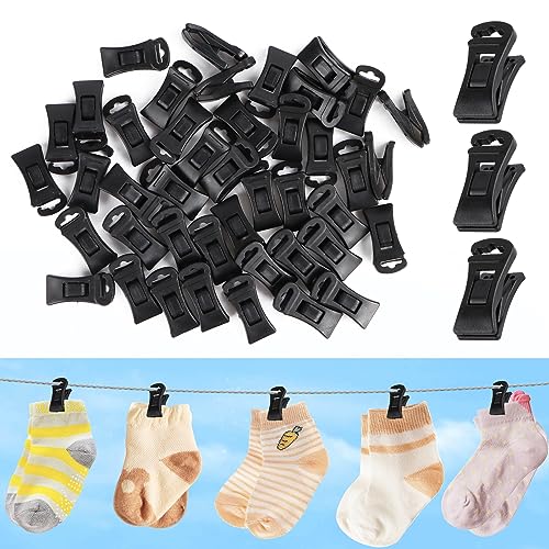 Byffoer 60 stycken sockklämmor för tvättmaskin och torktumlare, strumpor med strumpklämma bärbar tvättkrok, strumphållare med krok för klockor och förvaring av parade strumpor