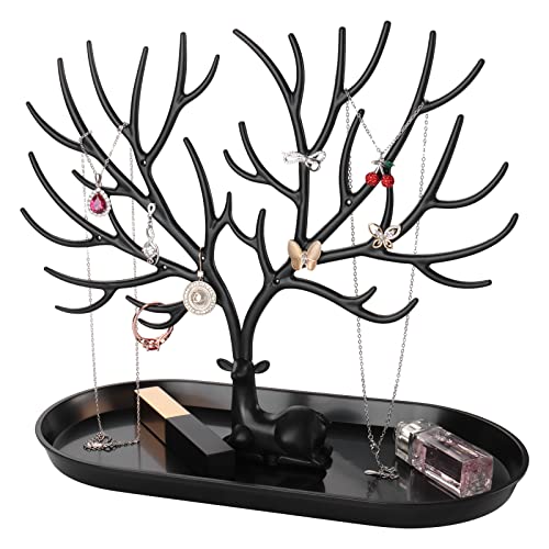 Penobon horn smyckesställ, smyckesträd flickor, 2-i-1 örhängeshållare & smyckesbricka av plast, smyckeshållare förvaring för örhängen, halsband, armband, klockor och ringar