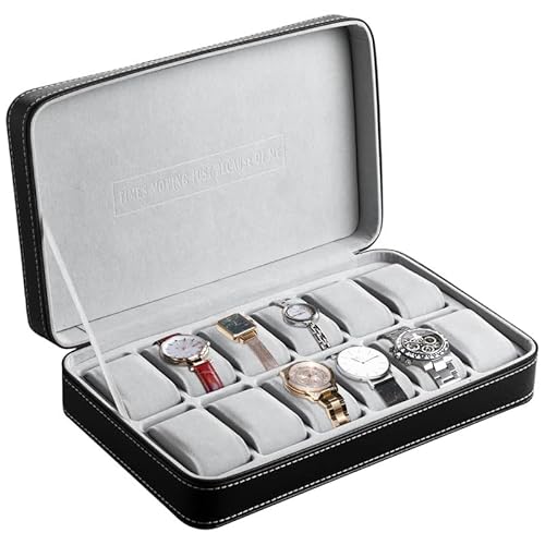 OSVINO Klocklåda för män 12 fack förvaring klockor svart resor sammet kudde set klocka konstläder fodral klockor dragkedja