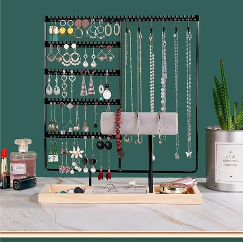 SZZHIYONG Smyckesställ, smyckeshållare, metall trä smycken arrangör hängande, 34 cm hög kedjehållare smyckesförvaring för armband örhängen klockor halsband förvaring hängande, svart