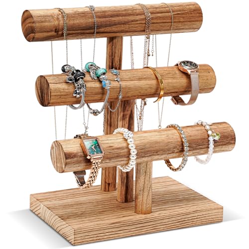 ProCase 3 nivåer T-form armbandshållare av trä, avtagbar armbandshållare smyckeshållare armbanddisplay, vintage armbandstativ klockstativ förvaring för armringar hårklämmor klockor – natur