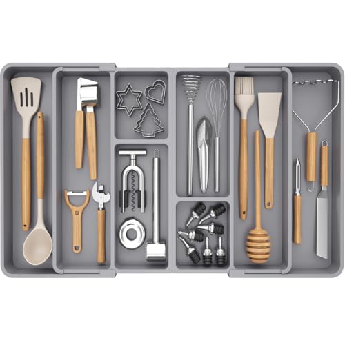 Lifewit Extra Large Besticklåda Organisatör, Utdragbar till 36 tum Bestickbricka för kök, Justerbar bestickhållare, plastbesticklåda, förvaring för köksredskap och och småsaker, Grå
