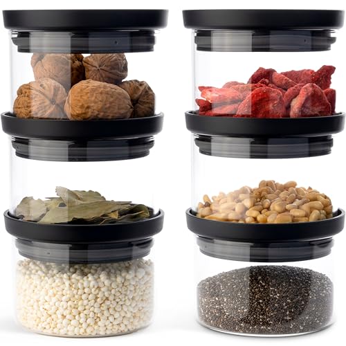 KIVY Små förvaringsburkar med transparent glaslock [6 x 350 ml] lufttäta kryddburkar stapelbara – kryddbehållare glas – glas kryddor låda – kryddburkar – förvaring för kryddor
