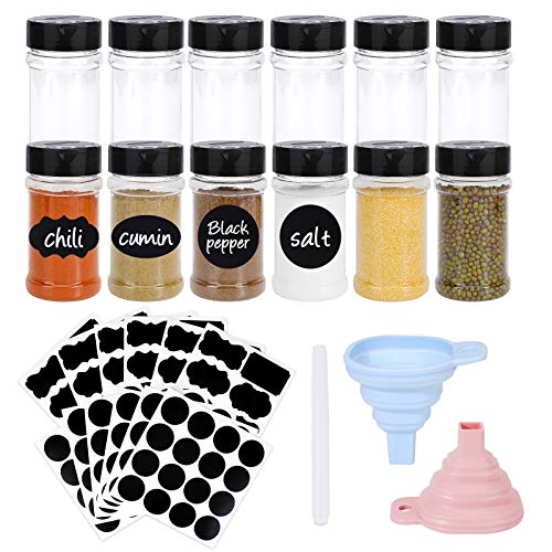 IDOBY Set med 12 plastkryddburkar, transparent kryddburk, BPA-fri plast, camping, kryddlåda, kök, salt och pepparströare, kryddburkar för förvaring, kryddor (transparent)