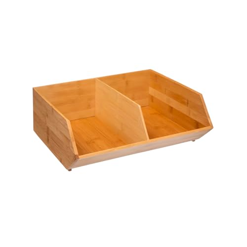 Wintem Ogranizer Förvaringslåda i slitstark bambu med 2 praktiska fack - perfekt för kök, entré eller badrum för förvaring av föremål, kryddor, redskap eller krämer - Platsbesparande 35x12,5 cm