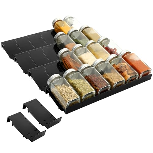Homety Kryddhylla, utdragbara lådor av metall, kryddförvaring, utdragbar för förvaring av kryddor, köksförvaring, kryddor, organisationssystem för kryddlåda, svart