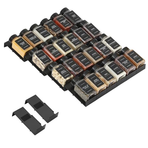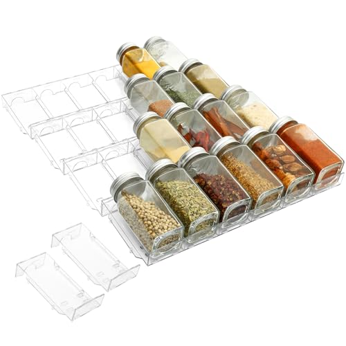 Belle Vous Töjbart 3 Lagers Kök Organiseringsinsättningar för Kryddor Räfflade Brickor i Plast (2 Pack) – Lutande Justerbar Förvaring för Skåp Hyllor och Lådor – Salt, Kryddor, Vitaminer & Tillbehör