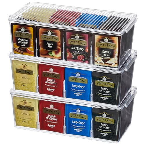Lifewit 3-pack stapelbar tepåse-förvaring i plast, uppdelad förvaringslåda för köksskåp, bänkskivor, skafferi, har plats för av kaffekapslar, sockerbitar, kryddor, 8 sektioner