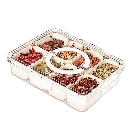 BigKing Uppdelad serveringsbricka, mellanmålslåda med lock, mellanmålsbricka med lock och handtag, 8 fack, bärbar förvaringsbox för kryddor, godis, frukt, nötter