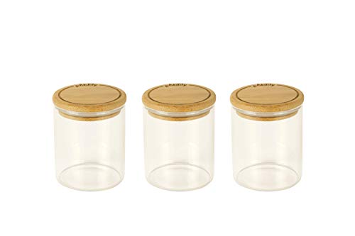 Pebbly Set Med Runda Kryddburkar I Glas, 3 St., Med Bambulock, Förvara Kryddor Och Örter Enkelt, Optimerad Förvaring För Ett Miljövänligt Kök