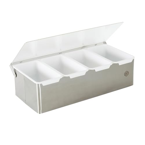 LOUIS TELLIER Kryddlåda med 4 fack – rostfritt stål – praktisk förvaring och dispenser för kryddor, ingredienser och fyllningar till hands – professionell kvalitet