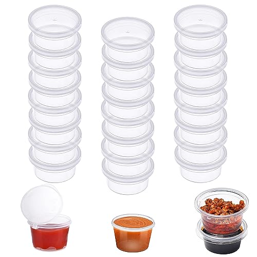 Jesdavan Plastbehållare med Lock, 50 Stycken Återanvändbar 2 oz Såsbehållare, Miniburkar för Förvaring av Snacks Dips Kryddor