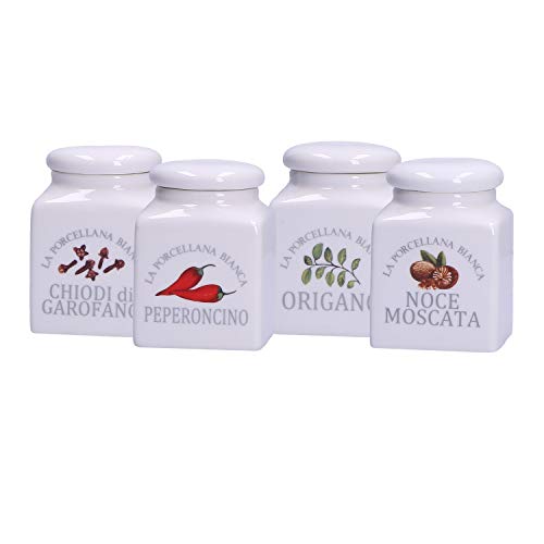 La Porslin Vit - Porslin Kryddor 4 st i presentlåda - Förvaring, Burkar och behållare - Köksburkar - Kina - 6,5xh9,5 cm