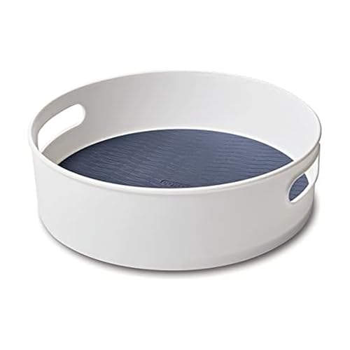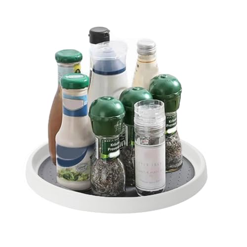 Lazy Susan skivspelare, 25 cm kryddhållare, glidkryddställ, 360 graders roterande kryddorganiserare för skafferiorganisatörer och förvaring för kylskåp, kök, skafferiskåp, kylskåp, vit/grå