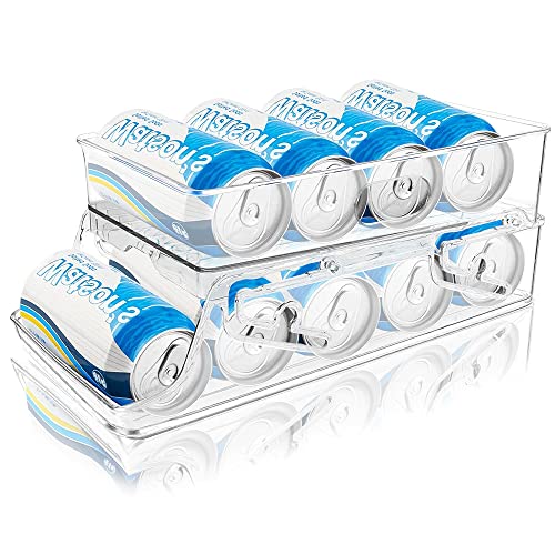 Lighterday rullande kylskåpsdispenser automatisk burhållare klar kylskåpsförvaring organisatörer, drycker öl läsk popburkar förvaring, för kylskåp kök skåp bänkskiva (2)