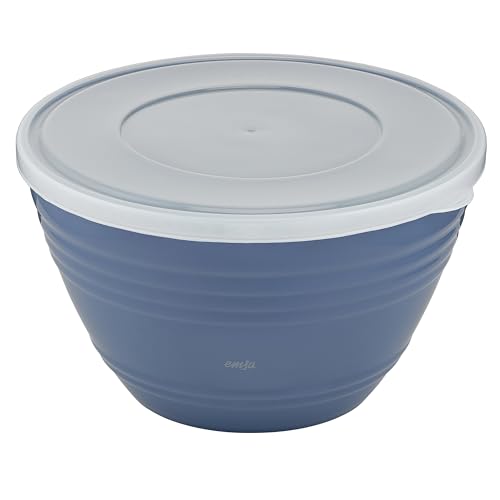 Emsa K32541 Prep&Bake plastblandningsskål 4,15 l | med konserverande lock för förvaring i kylskåp | halkfri botten | perfekt stabilitet vid blandning | diskmaskinssäker | blå