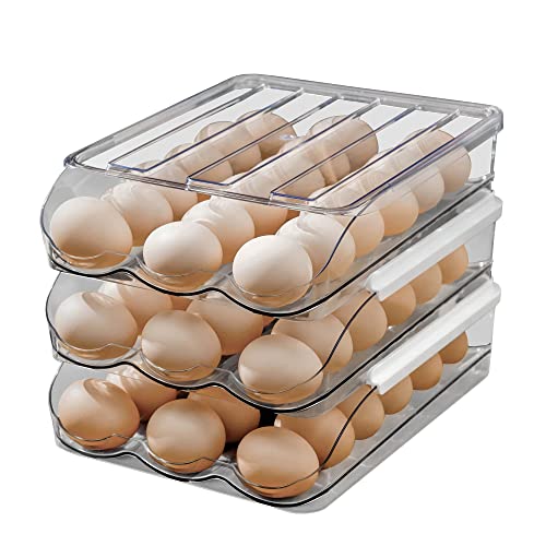Äggbehållare med stor kapacitet för kylskåp, automatiskt rullande ägg, organiserare, stapelbara brickor för fräsch förvaring, genomskinlig plastbehållare för kylskåp (3 lager)