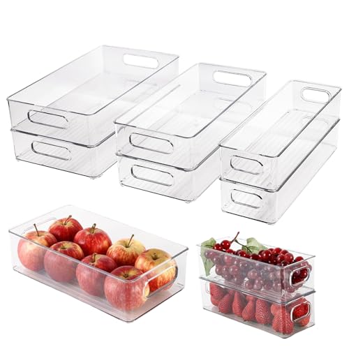 Vtopmart 8-pack förvaringsfack, genomskinliga plastfack för skafferi, kök, kylskåp, skåporganisation och förvaring, 4 fackhållare för paket, mellanmål, påsar, kryddpaket