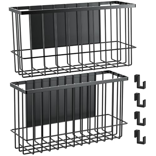 NiHome Magnetisk metallkorg organisatörer 2 st medium och liten, mångsidig förvaring för kök och kontor rymmer upp till 6,4 kg, lätt att fästa på kylskåp eller alla magnetiska ytor, platsbesparande