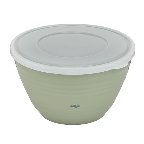 Emsa K32527 Prep&Bake plastblandningsskål 2,75 l | med konserverande lock för förvaring i kylskåp | halkfri botten | perfekt stabilitet vid blandning | diskmaskinssäker | grön