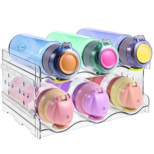 Zocipro Flaskhållare skåp, flaskförvaring, flaskhylla stapelbar för kylskåp/kök bänkskiva förvaring/skåp/vin/flaska, flaskförvaring, 2-pack, varje hylla rymmer 3 behållare