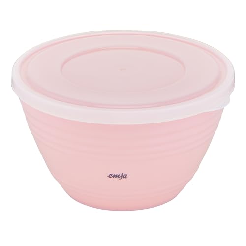 Emsa K32517 Prep&Bake plastblandningsskål 1,7 l | med konserverande lock för förvaring i kylskåp | halkfri botten | perfekt stabilitet vid blandning | diskmaskinssäker | rosa