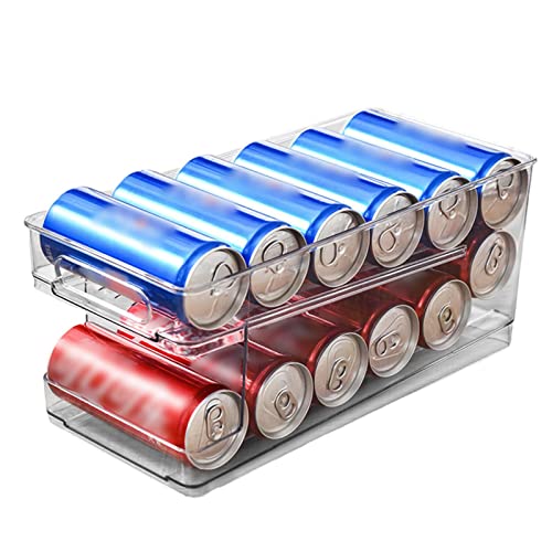 BestAlice Uppgradering soda burk dispenser för kylskåp, dubbelskikt automatisk rullning dryck läskburk förvaring organisatör, plast kylskåpsarrangör