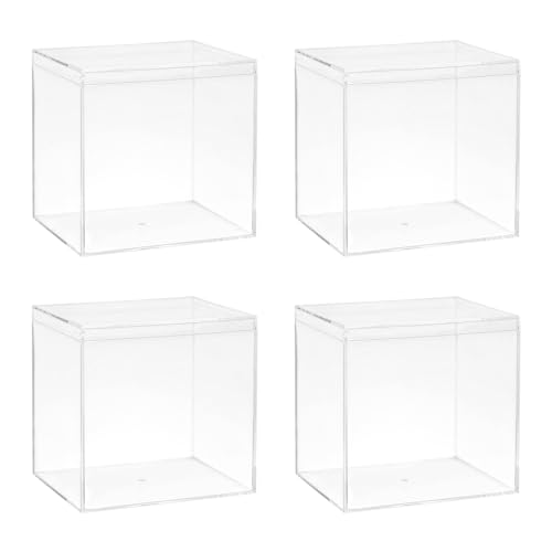 Keboyoe 4 st genomskinliga displaylådor i akryl 8,5 x 8,5 x 8,5 cm minimalistiska fyrkantiga förvaringslådor för leksaker gåvor godis piller små smycken